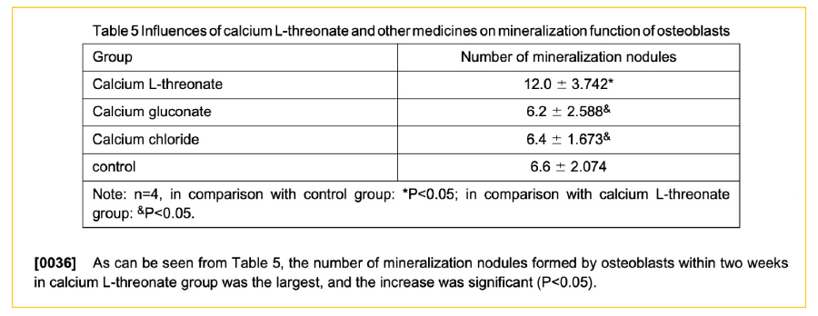 จากการเสริมแคลเซียมในรูปฟอร์มต่าง ๆ จะเห็นว่า Calcium L-Threonate มีค่า Number of mineralization nodules มากกว่า แคลเซียมรูปฟอร์มอื่น