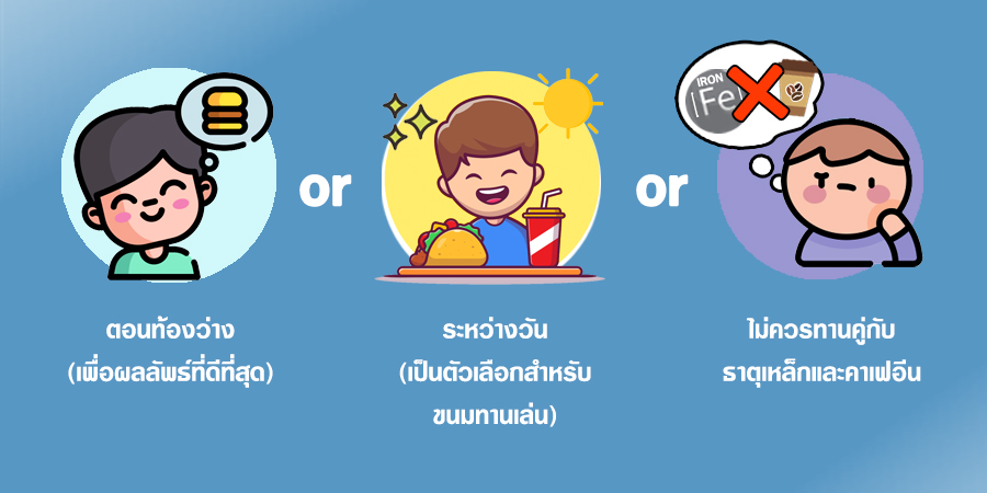 - ไม่ควรทานคู่กับธาตุเหล็กและคาเฟอีน